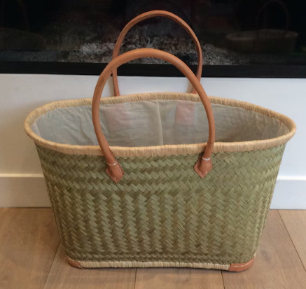 סל שוק צרפתי, תיק מרופח בעבודת יד, סל קש עם ידיות מעור כפול